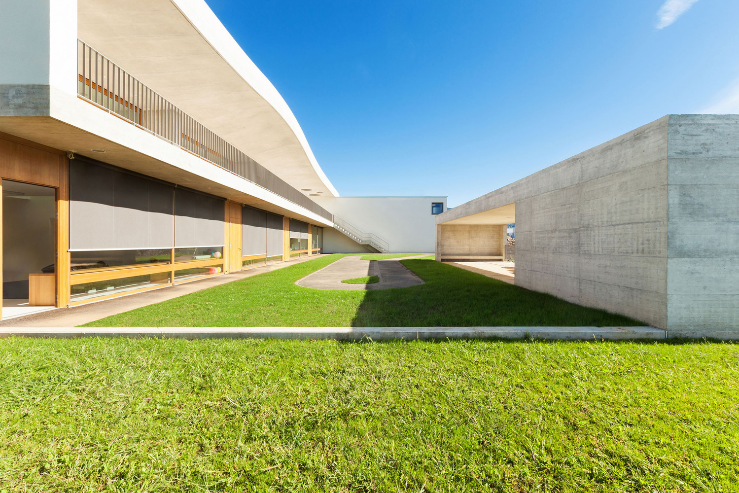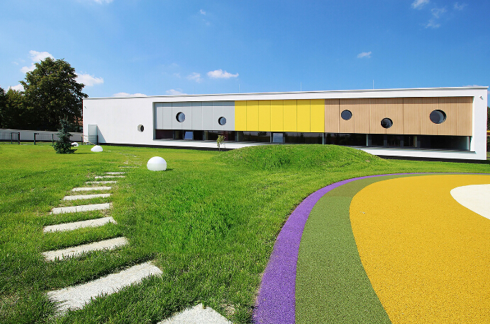瑞士斯塔比奧在一片美麗的綠地上,佇立著斯塔比奧幼兒園,通過道路和橫墻將新樓和景觀連接起來,去為項(xiàng)目地......