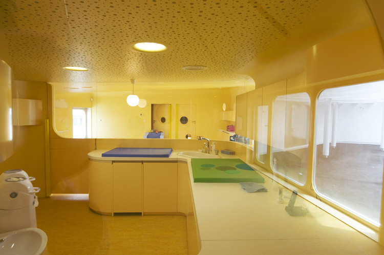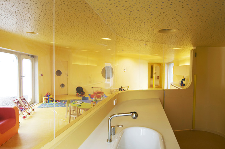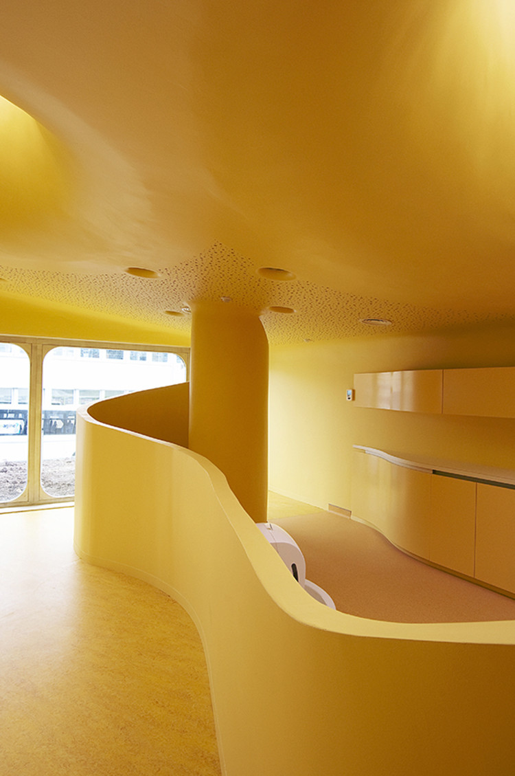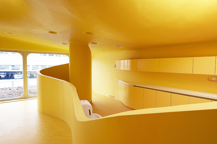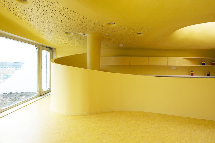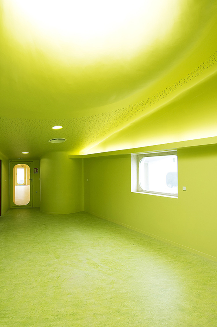 為了保證設(shè)施的安全,所以在內(nèi)部配件的設(shè)計(jì)中,消除了所有的直角結(jié)構(gòu),并提供平滑彎曲的邊緣,即使連鋒利的邊緣也被倒圓。這些是該建筑的特點(diǎn)之一,外墻像波浪一樣進(jìn)入了內(nèi)部空間。