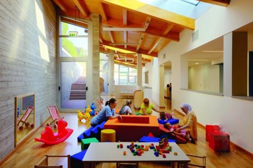 ccd studio設(shè)計(jì)的位于意大利維尼奧拉的Barbapapà幼兒園,是一項(xiàng)舉辦的設(shè)計(jì)競(jìng)賽。該幼兒園位于城市開發(fā)區(qū)的邊緣地帶的山坡之上,離城市歷史中心并不太遠(yuǎn),它可以容納60個(gè)兒童,由4間教室組成。工程的目標(biāo)是達(dá)到可持續(xù)性的要求,這點(diǎn)從建筑的各個(gè)方面都可以體現(xiàn)出來(lái),并且建筑本身也將這種可持續(xù)性的價(jià)值傳遞給了孩子們。