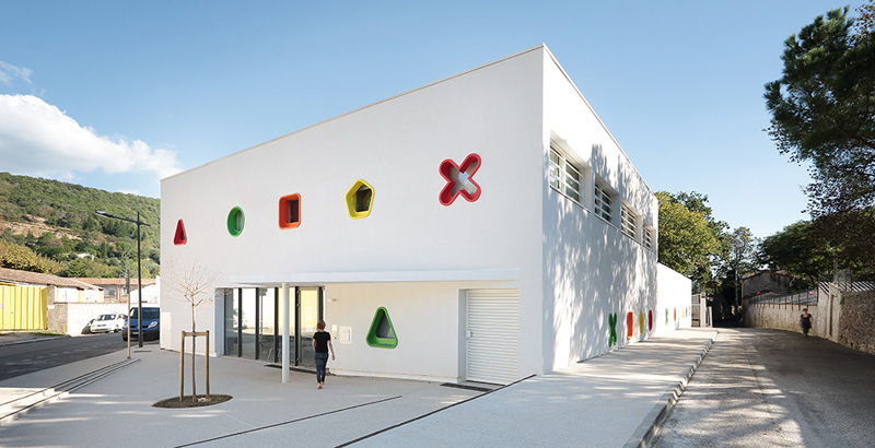 這個(gè)育兒中心是以之前的一個(gè)農(nóng)業(yè)部門(mén)改建而來(lái),位于兩條狹窄的街道的街角之處,值得一提的是育兒中心與l’Ecureuil療養(yǎng)院建在一起:兩個(gè)建筑之間有一個(gè)漂亮的花園里面有很多栗子樹(shù),增加了它們之間的聯(lián)系和代際關(guān)系。(幼兒園設(shè)計(jì))