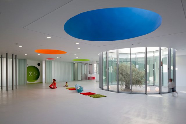 幼兒園室內(nèi)設(shè)計(jì)要考慮不同的空間感和尺度,創(chuàng)造一個(gè)能容納多種感知的空間,教師和孩子們都能發(fā)展自身的認(rèn)知能力,所以幼兒園設(shè)計(jì)面臨的就是成人和孩子的角度的雙重尺度的設(shè)計(jì)。。Vereda de Estudiantes 幼兒園的設(shè)計(jì)通過將完整的建筑分散成幾座不同的小建筑以解決這個(gè)問題。