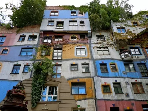 由藝術(shù)家改行為建筑師的佛登斯列·漢德瓦薩在好友的幫助下設(shè)計(jì)建造了百水公寓。百水公寓建于1983至1985年間,包含了一棟一層樓和一棟兩層樓的公寓。百水公寓包含了很多自然元素,樹木會在房間內(nèi)生長,樹木的枝干在船外延伸。不過這樣設(shè)計(jì),經(jīng)過歲月的沉淀,想必會被植被慢慢吞噬。