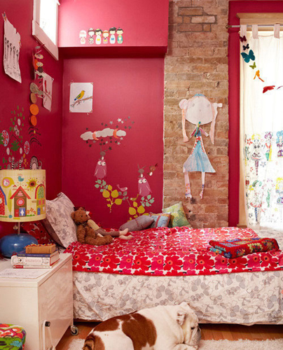采用各種顏色的剪紙作為主題,以陳舊磚墻作為點綴,可以選擇玫瑰紅色的兒童房,這個風(fēng)格給人的印象就是熱情奔放,而以陳舊的磚墻則是可以中和色調(diào),能有效的保證孩子不會因為視覺上讓孩子的心情太過浮躁,而且在墻體上還可以貼一些可愛的墻貼,整個房間都從滿孩子喜好的元素,再配以艷麗的顏色會給予孩子很多的想象空間。(幼兒園設(shè)計)