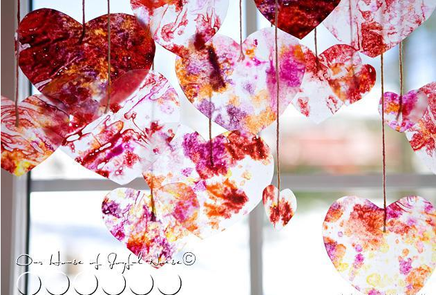 直接用透明膠帶將心形圖案粘貼在窗子上,當(dāng)陽(yáng)關(guān)透過(guò)窗子照進(jìn)教室時(shí),會(huì)非常的漂亮。