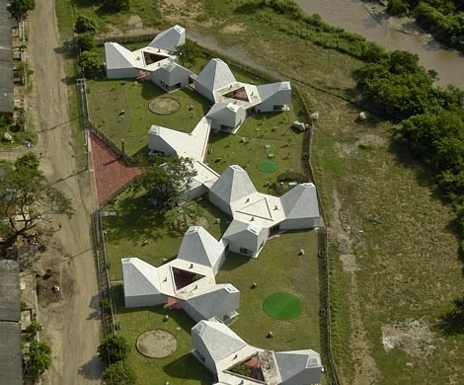Timayui幼兒園由六個像花一樣的單體構(gòu)成,它們散落在場地中,同時將室外空間融合到幼兒園的平面中。每座建筑的內(nèi)部還設(shè)計了天窗,自然光線從墻面傾瀉而下,為孩子們提供了明亮的室內(nèi)環(huán)境。 該幼兒園不僅提供給孩子健康、積極的環(huán)境,而且致力于改善周圍貧窮的社區(qū)環(huán)境。