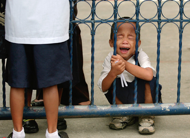 先來看看各國(guó)兒童們都是什么樣的吧,有人歡呼雀躍有人悶悶不樂,還有人顯然是沒睡夠哈欠連天,不過最搶鏡的,還是哇哇大哭各種拒絕的熊孩子,哭天搶地一臉的生無可戀,簡(jiǎn)直可以算的上人間最痛苦的事兒了。菲律賓馬尼拉,阿基諾小學(xué)開學(xué)第一天,一個(gè)小男孩蹲在門口大哭。
