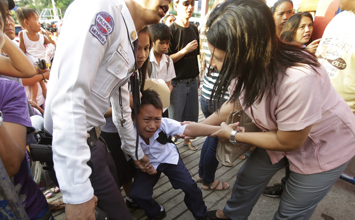 菲律賓奎松,公立小學(xué)開學(xué),一個(gè)不愿意去上學(xué)的小男孩大哭。