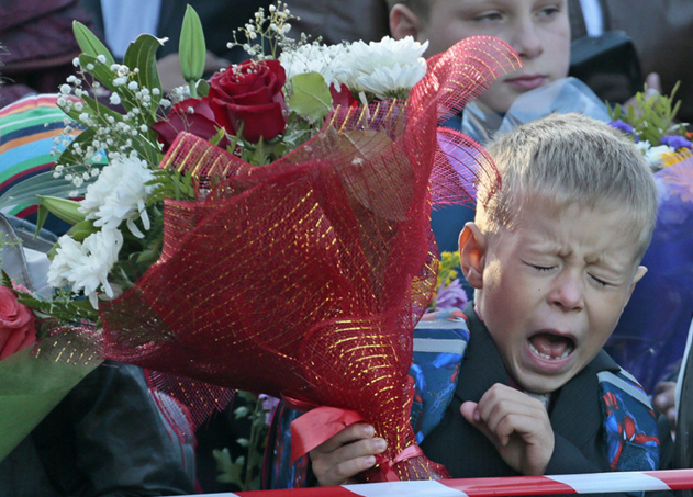 俄羅斯莫斯科,開學(xué)典禮上的一年級(jí)新生。