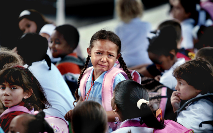 不知不覺暑假已經(jīng)接近尾聲了,小盆友們又到了新學(xué)期開學(xué)的時(shí)候,撒歡玩了一個(gè)假期,小盆友們返校的心情會(huì)是怎樣呢?,美國(guó)佛州,開學(xué)第一天放學(xué),6歲的TRINITY NAZARIO含淚等爸爸來接。