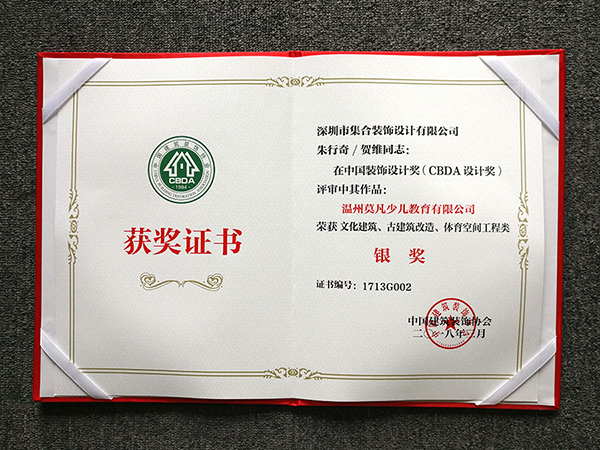 2018年,集合作品“溫州莫凡少兒教育有限公司”在中國(guó)裝飾設(shè)計(jì)獎(jiǎng)中獲銀獎(jiǎng)