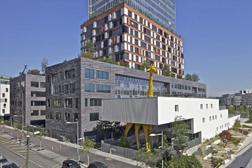 對于兒童來說,去醫(yī)院是非常恐怖的一件事,但在巴黎,新的“長頸鹿兒童看護(hù)中心”卻能讓孩子們心頭的恐懼消散。Hondelatte Laporte事務(wù)所設(shè)計的這座建筑帶有很強(qiáng)的趣味性,是智能建筑設(shè)計的典范。該事務(wù)所介紹說,看護(hù)中心變成了一個講故事的地方,也是城市叢林的一個隱喻。動物和樹木將建筑與自然和運動聯(lián)系起來?!伴L頸鹿”是一道標(biāo)示,無論從哪個角度望過來都清晰可見。要進(jìn)入看護(hù)中心,人們必須穿越“長頸鹿”的四條“腿”,看上去十分獨特。一只“北極熊”正攀爬在一側(cè),一群“瓢蟲”則穿越立面,活靈活現(xiàn),非常有趣。