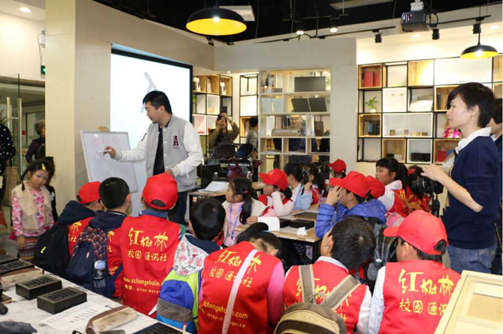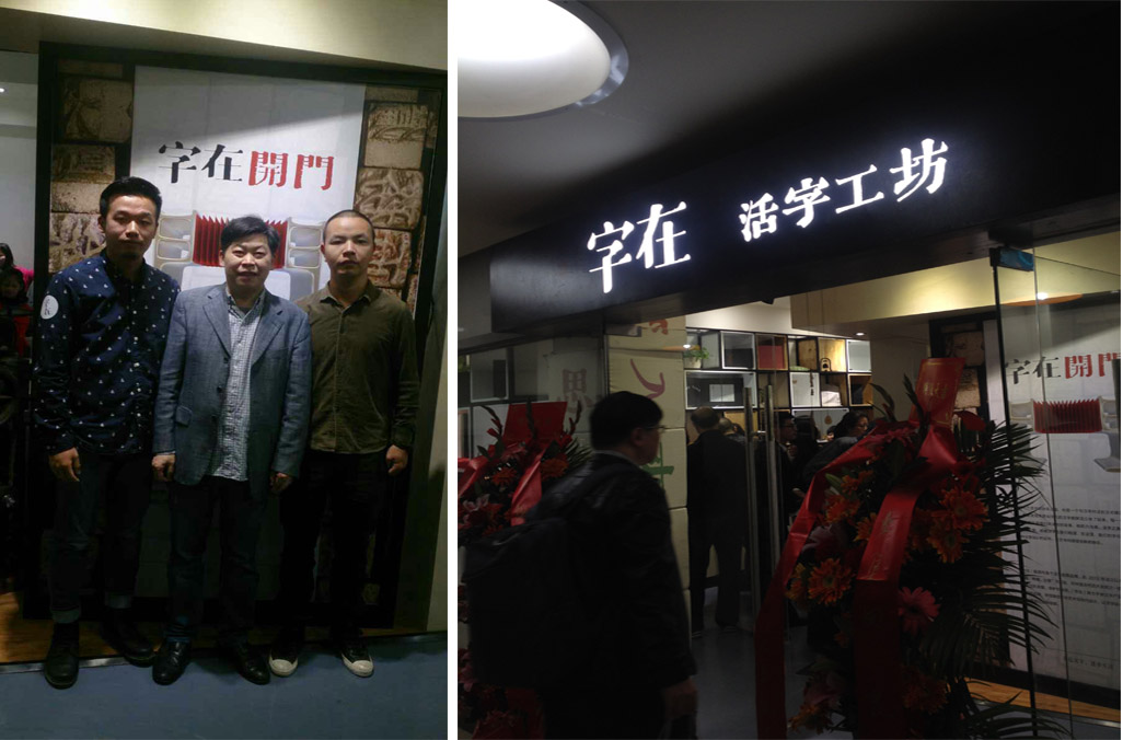 2015年1月25日,全新漢字體驗模式的「字在」活字工坊在深圳中心書城隆重開業(yè)啦!公司設(shè)計總監(jiān)賀維先生、創(chuàng)意總監(jiān)朱行奇先生受邀參加了開業(yè)儀式?!缸衷凇箘?chuàng)始人劉美松先生在開業(yè)儀式上強調(diào):“活字有種集聚了五千年文明的力量,可惜現(xiàn)在我們對文字的感知只能停留在指尖輕輕劃落的那一瞬間,而活字工坊的存在可以讓這種觸摸變得樸實而有力量?!薄缸衷凇拐Υ蛟煲粋€集知識性、互動性、創(chuàng)新性的漢字“校外課堂”。